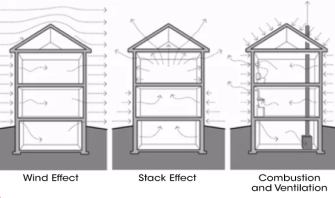 Figure 4: Processes that create air-flow across the building envelope. SOURCE: Building Science Digests, BSD-014: Air Flow Control in Buildings, John Straube, October 15, 2007