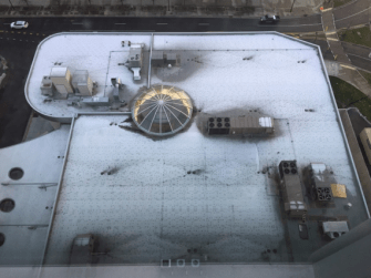 Figure 5: Photo of a rooftop after a light snow with snow melt at each fastener.