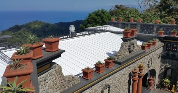 Located in a lush tropical jungle, the luxury Villa Caletas Hotel faced numerous waterproofing challenges. Built about five years ago, the existing roof coating was already starting to fail. Leaks as well as rusted areas had developed across its 10,000 square meters of roofing—particularly on the panel edges. It was time for a refresh of every roof in the complex.