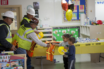 "Each time I would visit the project, the manager would mention to me how much the kids loved the roofers and how excited they were," Gossett says. "They were learning about community helpers in the first week we started, so it tied in nicely with their curriculum. That's when I had the idea to throw them a party and donate books to the center."