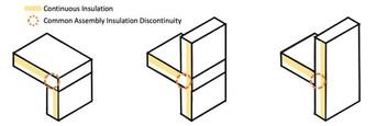 In current 2015 IECC and ASHRAE 90.1 national model commercial energy codes, the basic prescriptive requirements for both walls and roof systems include the use of continuous insulation in many climate zones and construction types. Continuous insulation is far more effective than cavity insulation, which is tucked into the voids between framing members. In parapets, the framing members are exposed to exterior conditions on both sides of the wall, rendering cavity insulation highly ineffective. Across the flush roof edge and parapets, maintaining continuity of the “continuous insulation” can be tricky. Even with continuous insulation designed in the roof and wall systems, a common thermal discontinuity emerges where the roof system meets the backside of the parapet wall. These discontinuities are important because they represent thermal bridges in the thermal control layer.