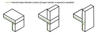 Not all wall, roof, and parapet scenarios require a vapor control layer. In fact, adding a vapor barrier to a design without consulting with a building enclosure professional can lead to unintended moisture problems, such as preventing an assembly from drying from incidental moisture. Many times when vapor control is discussed, the conversation quickly slips into “air control” strategies to manage condensation-related issues — as air movement can transport up to many times more moisture than vapor diffusion alone. Vapor retarding materials often also act as air barriers, and can be incorporated into the continuous air barrier design. As designing and installing continuous air barriers becomes required in most buildings, the confusion regarding air barriers and vapor retarders still exists (more about air barrier vs. vapor retarders here).