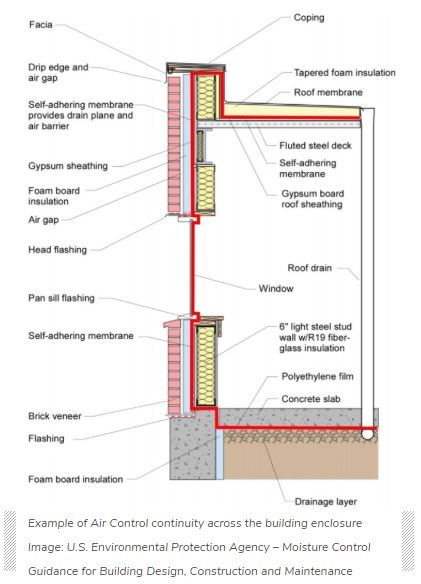 Most buildings require a continuous air barrier. If you think of a building as a solid 3D shape, like a cube, then the air barrier must be continuously detailed across all six sides of the building enclosure to be effective.