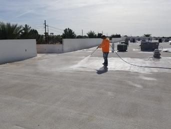 Before you begin recoating the foam roof, a thorough inspection of the whole surface is required. This includes a visual inspection for obvious cracks, peeling, ponding or staining. In particular, have a look around HVAC units, exhausts or anywhere a joint or cut was made, as these will typically be the weakest points and most susceptible to damage.
